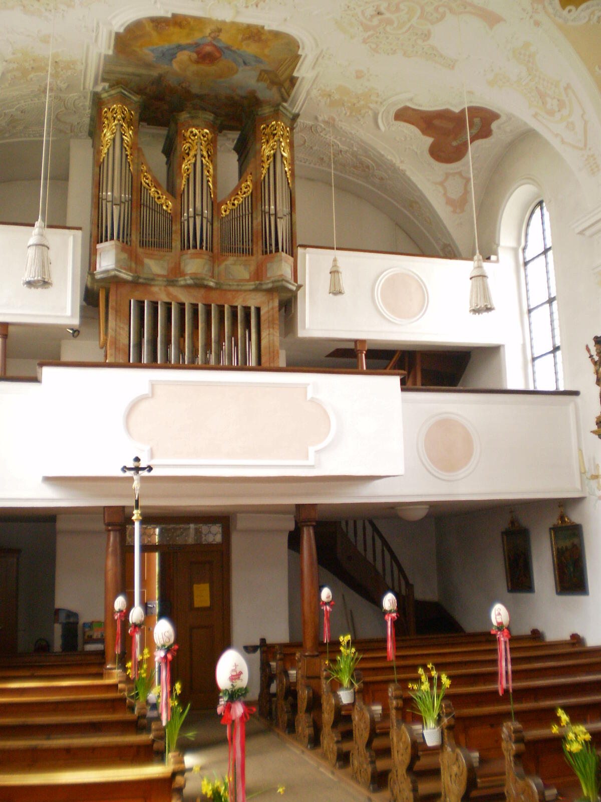 1822 Erweiterung der unteren Empore und Neuerrichtung der oberen Empore für die Ledigen durch Pfarrer Gruber